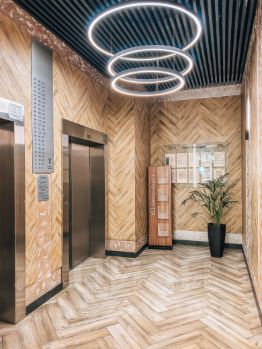 Дом 2022 года постройки. На этаже небольшое количество квартир, установлены современные лифты. Стильная отделку холлов и входных групп, с эффектной иллюминацией. Круглосуточная охрана дома и камеры на территории и в доме.