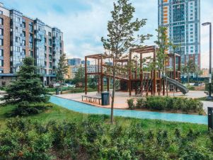 Придомовая территория - максимально уютная: красивый продуманный ландшафтный дизайн, огромное количество зелени, кустарников и взрослых деревьев, оборудованные детские и спортивные площадки, а также зоны отдыха и прогулочные аллеи.