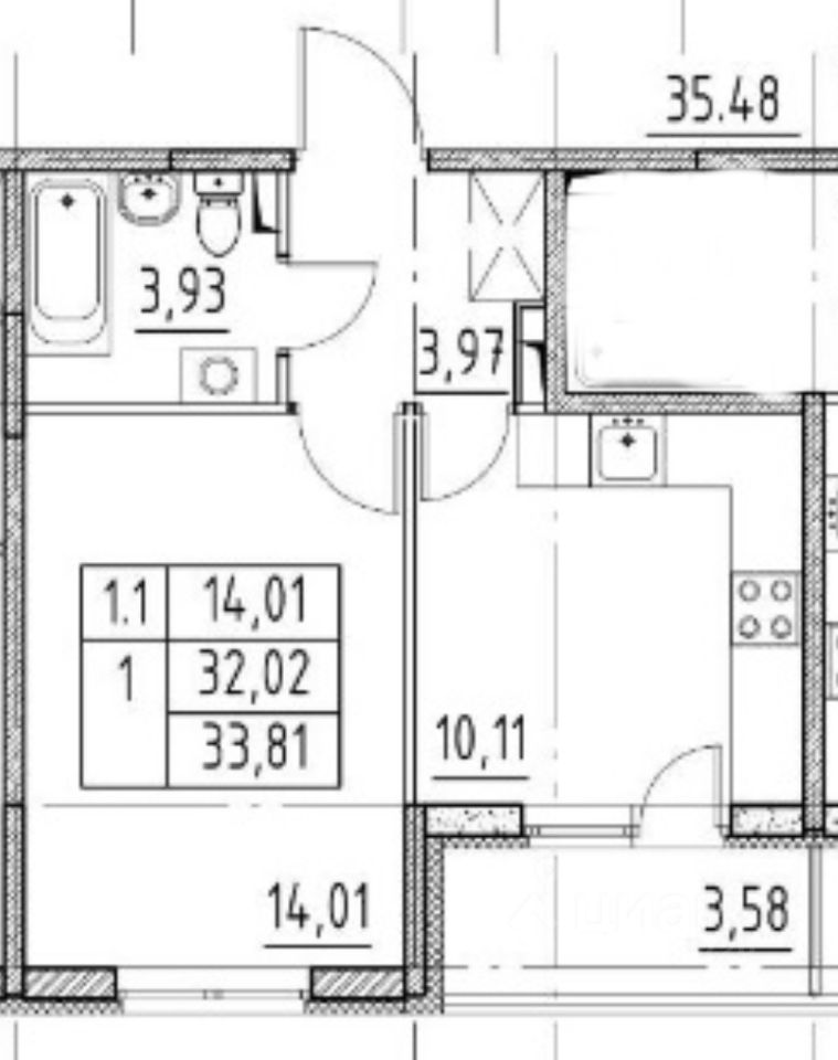 Продается просторная однокомнатная квартира в новом малоэтажном жилом комплексе Зеленый