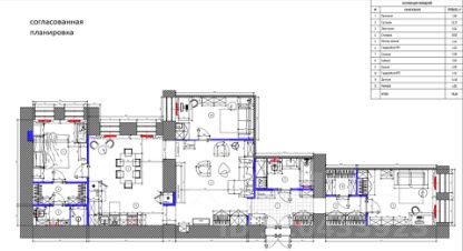 Перепланировка. Имеется согласованный с МВК проект перепланировки, который по сравнению с текущей планировкой подразумевает организацию большой кухни и отдельной гостиной, мастер-спальню со своим санузлом и гардеробной, а также 2 дополнительные комнаты, просторный второй (основной) санузел и коридор.