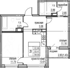 Предлагается к продаже уютная 2-комнатная квартира в деревне Новое Девяткино, Всеволожский район, Ленинградская область. Общая площадь квартиры составляет 54.9 кв. м, расположена на 8-м этаже 12-этажного дома. До ближайшей станции метро "Девяткино" можно дойти пешком за 19 минут, что делает это предложение особенно привлекательным для тех, кто ценит удобство и доступность общественного транспорта.