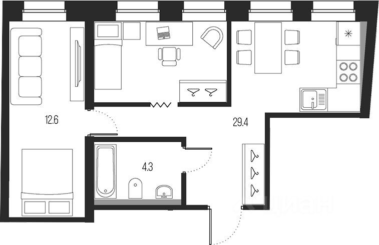 Квартира с качественным евроремонтом, который выполнен в светлых тонах, создающих атмосферу уюта и комфорта. Просторная кухня площадью 29.4 кв. м — мечта любого кулинара, здесь можно комфортно готовить и собираться с друзьями. Ванная комната оборудована современной сантехникой, а продуманная планировка позволяет максимально эффективно использовать жилое пространство.
