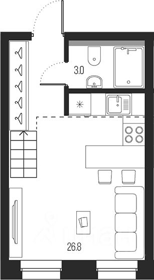 Студия в отличном состоянии, выполнен качественный ремонт. В квартире есть вся необходимая мебель и техника для комфортного проживания. Просторная кухня-студия позволяет удобно зонировать пространство, создавая комфортную атмосферу для жизни. Санузел совмещенный, оборудован современной сантехникой.