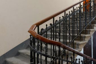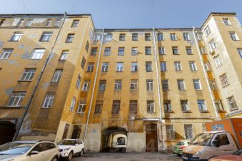 Окна выходят во двор, дом расположен в тихом зелёном квартале недалеко от центра. В соседнем дворе детский сад, пешком до метро 10 минут. Парковка рядом с домом без проблем.
