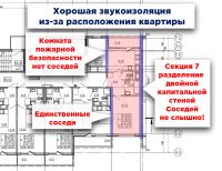 Квартира на площадке максимально удалена от лифтового холла, крайняя в секции. Соседи только с одной стороны. Всегда тихо и спокойно.