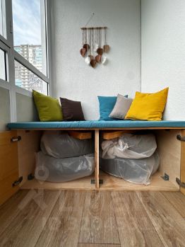 На лоджии организовано хранение для заготовок или автомобильных колес.
