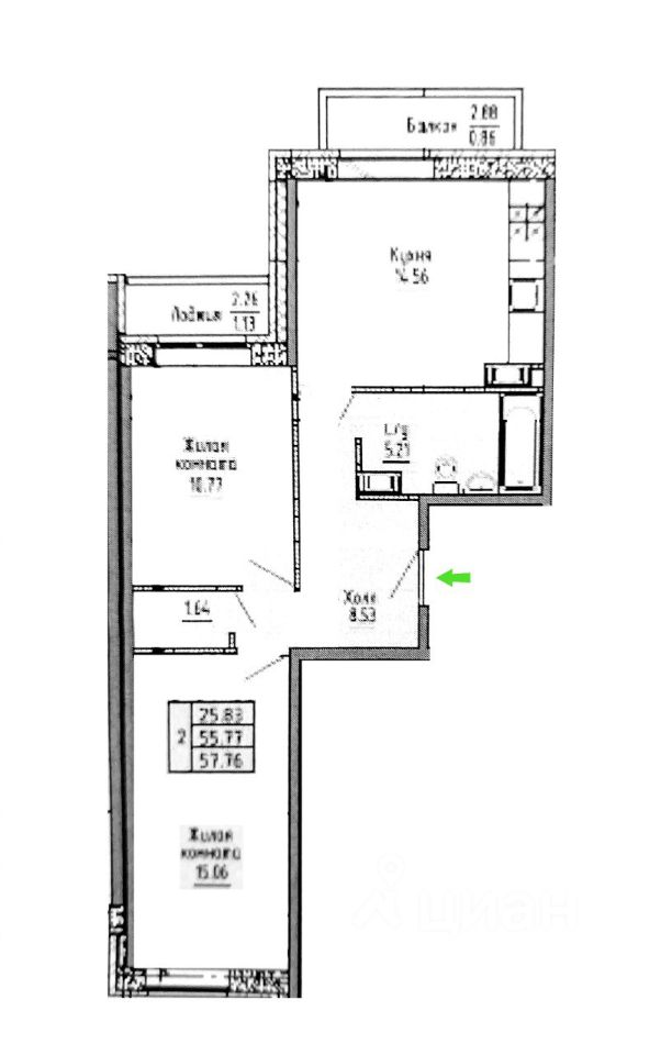 +Общая площадь 56 кв.м. плюс зaстеклeннaя лоджия и застеклeнный бaлкон!