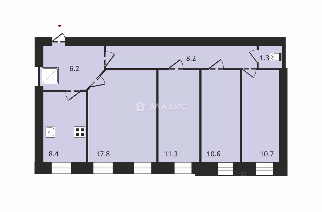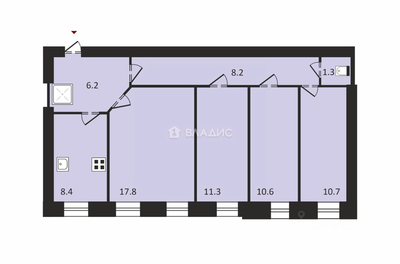Комнаты 17.8+11,3+10,6+10,7 м²