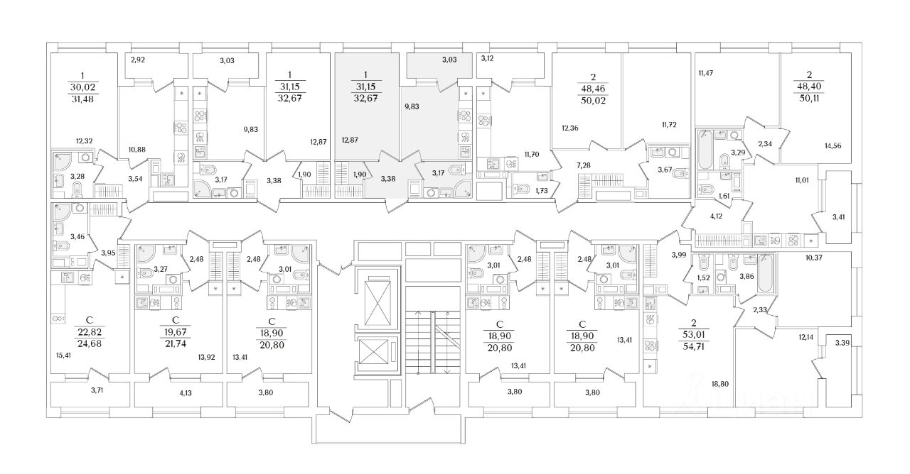 Квартира находится в 15 этажном доме, в Аурум - Корпус 2 на 6 этаже. Общая площадь квартиры 32,67 кв.м.