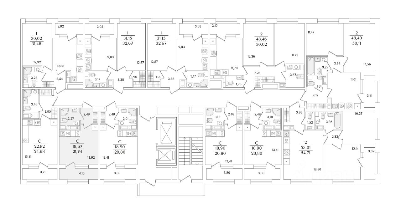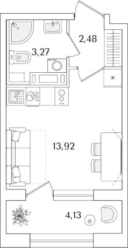 Квартира находится в 15 этажном доме, в Аурум - Корпус 2 на 8 этаже. Общая площадь квартиры 21,74 кв.м.