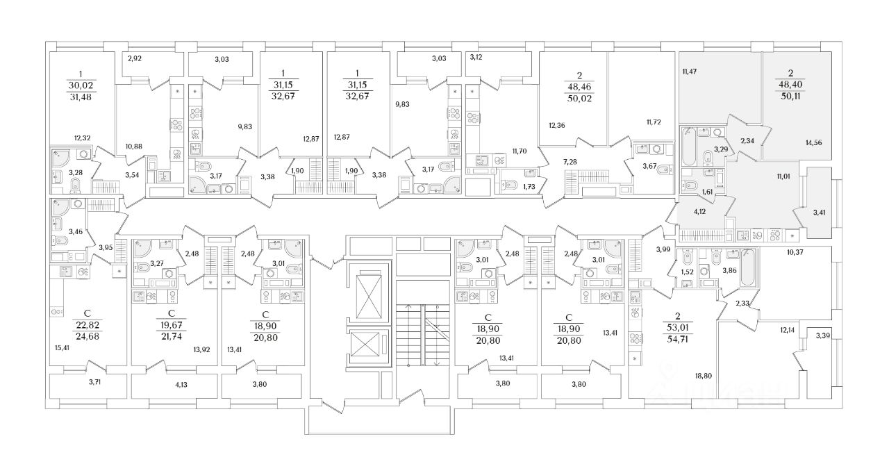Квартира находится в 15 этажном доме, в Аурум - Корпус 2 на 8 этаже. Общая площадь квартиры 50,11 кв.м.