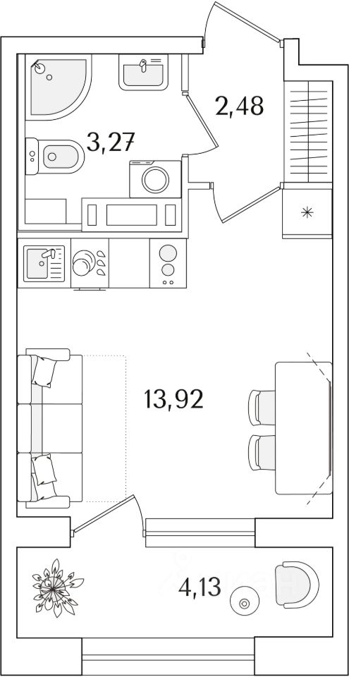 Квартира находится в 15 этажном доме, в Аурум - Корпус 2 на 11 этаже. Общая площадь квартиры 21,74 кв.м.