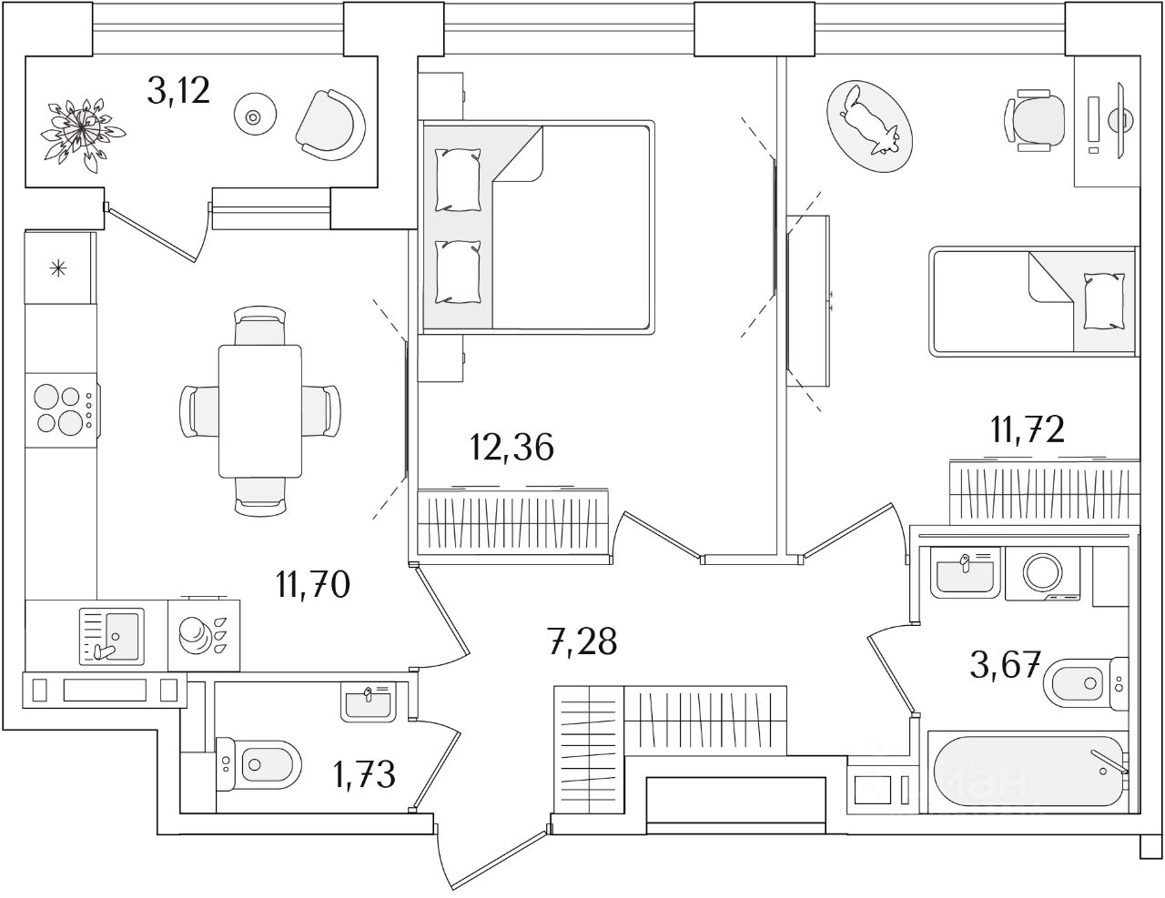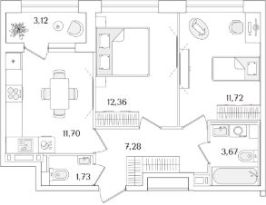 Квартира находится в 15 этажном доме, в Аурум - Корпус 2 на 11 этаже. Общая площадь квартиры 50,02 кв.м.