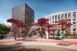 Внутри комплекса создана комфортная и современная жилая среда. Закрытый внутренний двор с креативным пространством, современным озеленением, выразительной геопластикой, большим плейхабом, беговым маршрутом станет идеальным местом для игр, отдыха, прогулок и общения.