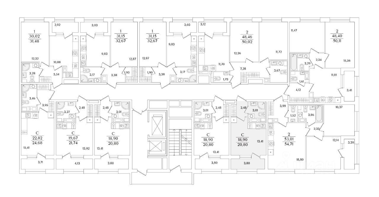 Квартира находится в 15 этажном доме, в Аурум - Корпус 2 на 11 этаже. Общая площадь квартиры 20,80 кв.м.