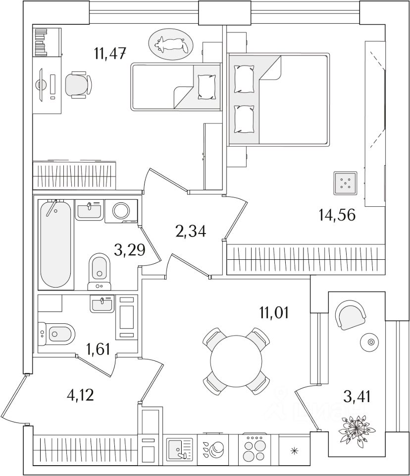 Квартира находится в 15 этажном доме, в Аурум - Корпус 2 на 12 этаже. Общая площадь квартиры 50,11 кв.м.