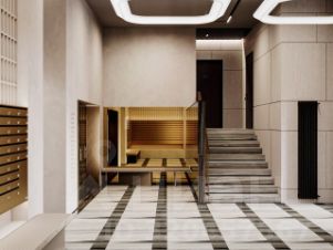 Одно из знаковых пространств жилого комплекса "Аурум" — центральная входная группа. Это место, сочетающее множество ролей. Это и визуальный акцент и статусное фотогеничное пространство и территория отдыха и встреч для жителей.