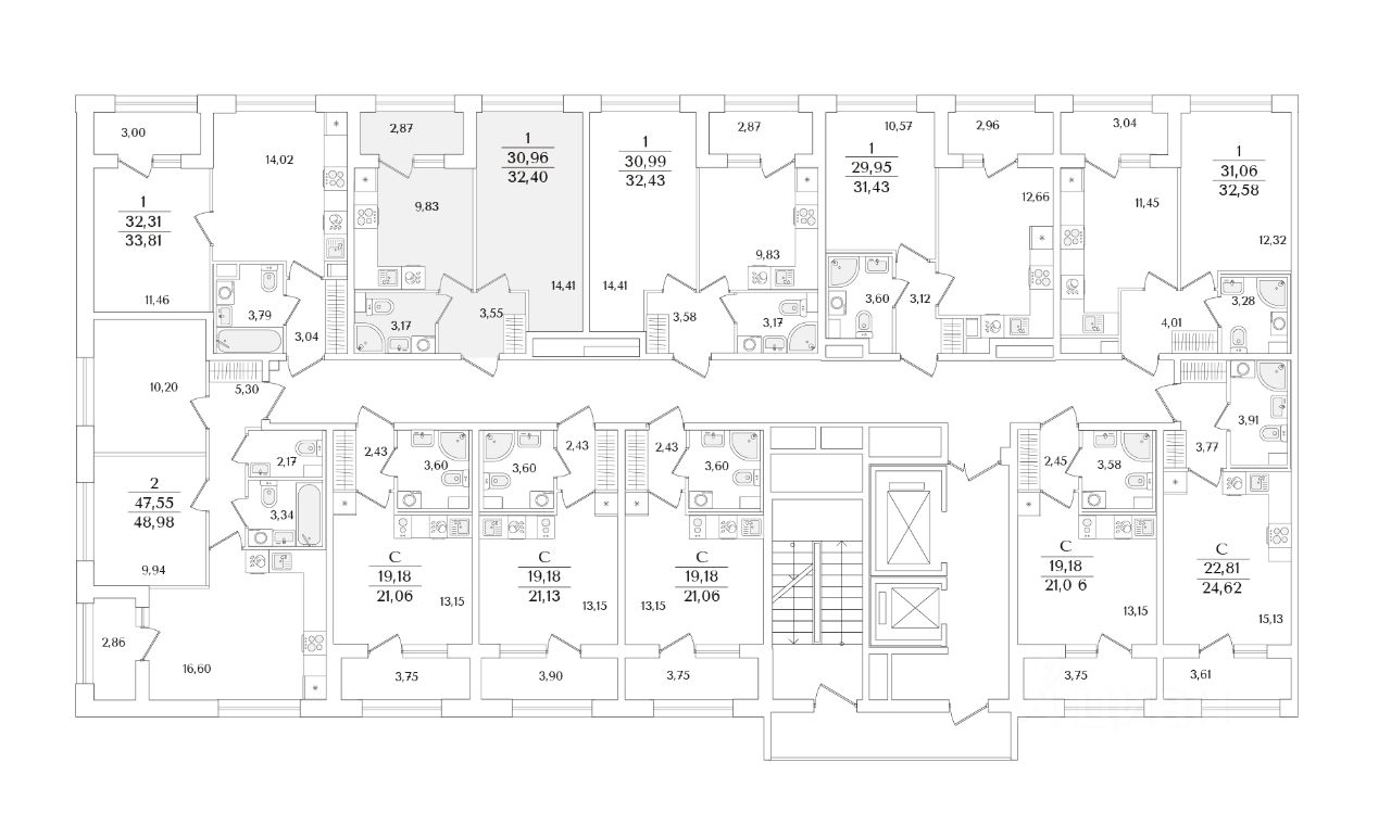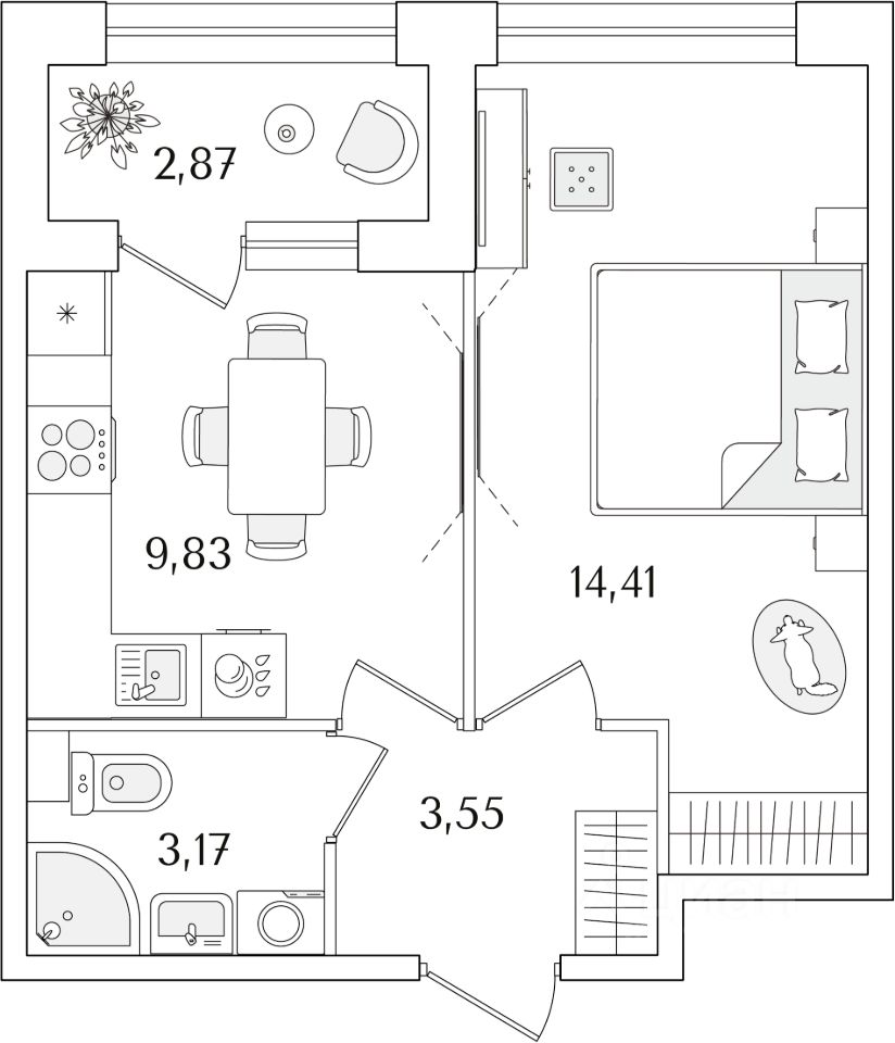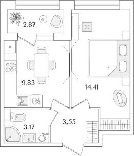 Квартира находится в 15 этажном доме, в Аурум - Корпус 2 на 3 этаже. Общая площадь квартиры 32,40 кв.м.
