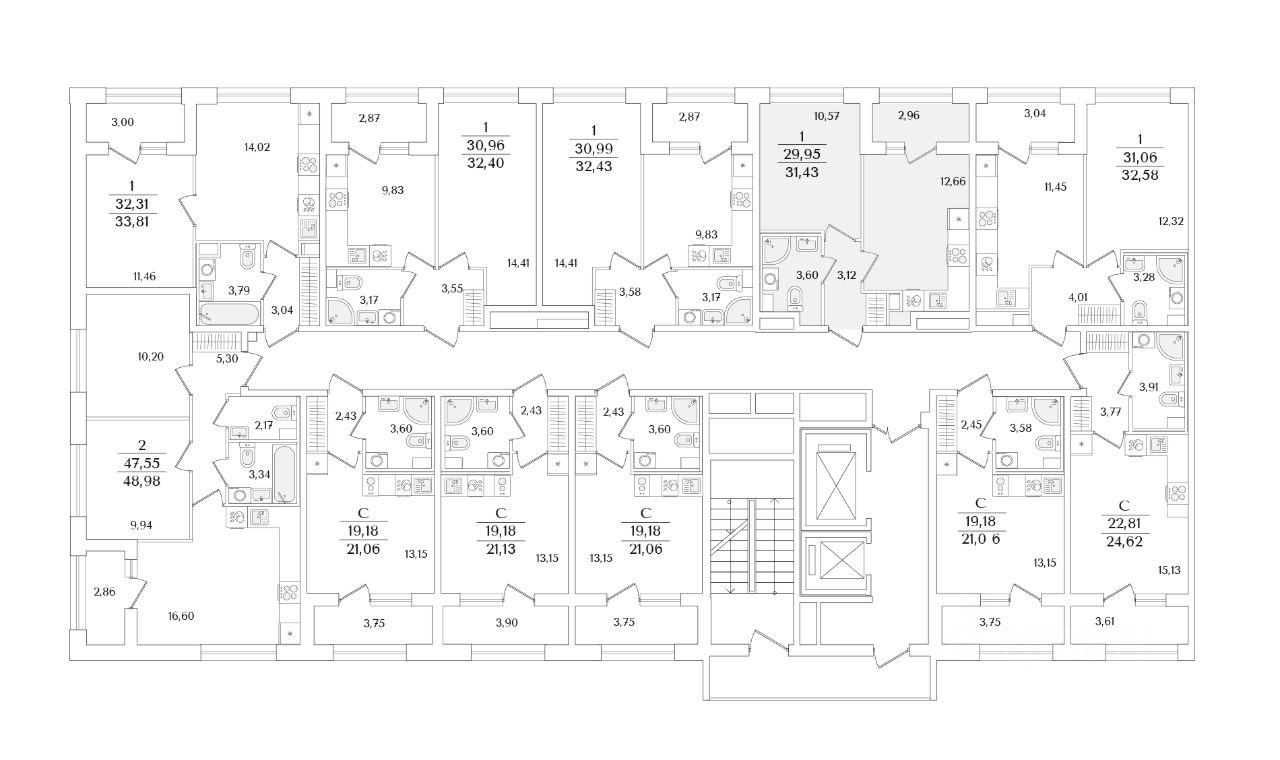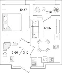 Квартира находится в 15 этажном доме, в Аурум - Корпус 2 на 3 этаже. Общая площадь квартиры 31,43 кв.м.