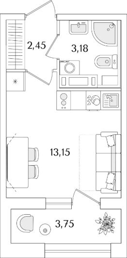 Квартира находится в 15 этажном доме, в Аурум - Корпус 2 на 7 этаже. Общая площадь квартиры 20,66 кв.м.