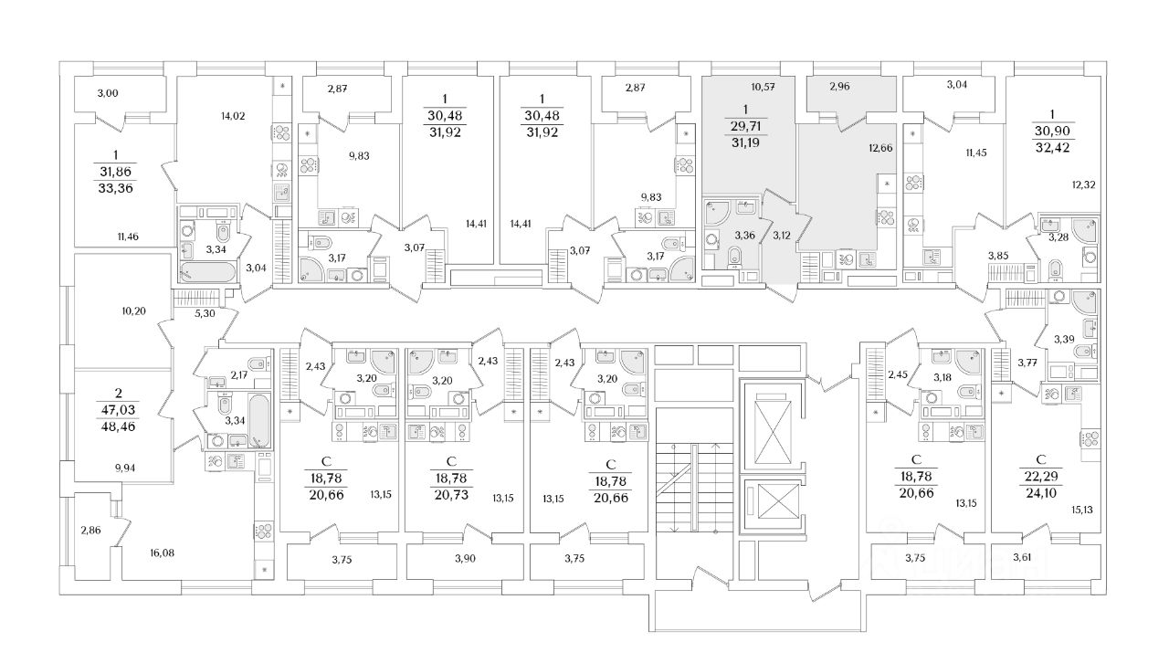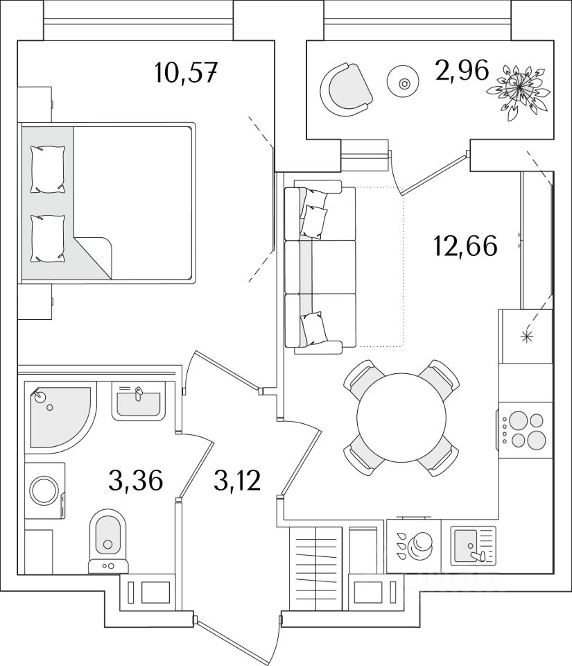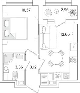 Квартира находится в 15 этажном доме, в Аурум - Корпус 2 на 8 этаже. Общая площадь квартиры 31,19 кв.м.