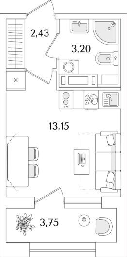 Квартира находится в 15 этажном доме, в Аурум - Корпус 2 на 9 этаже. Общая площадь квартиры 20,66 кв.м.