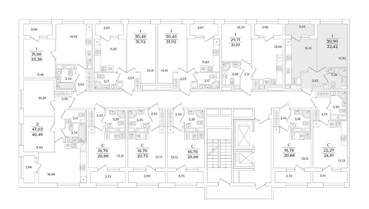 Квартира находится в 15 этажном доме, в Аурум - Корпус 2 на 9 этаже. Общая площадь квартиры 32,42 кв.м.