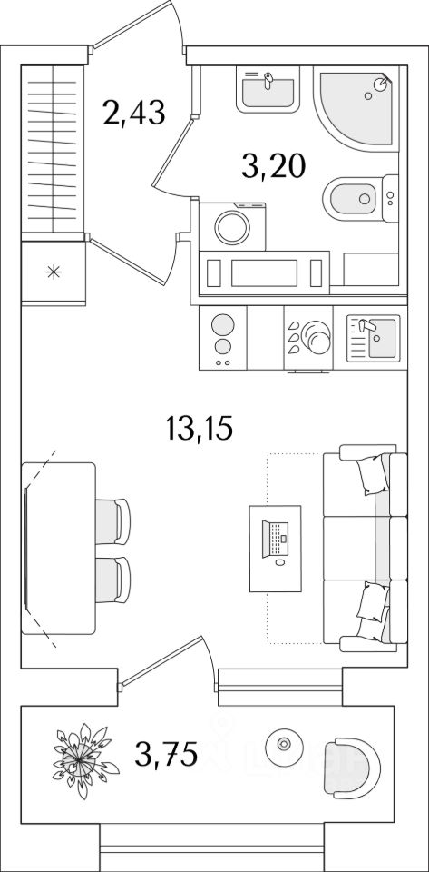 Квартира находится в 15 этажном доме, в Аурум - Корпус 2 на 11 этаже. Общая площадь квартиры 20,66 кв.м.