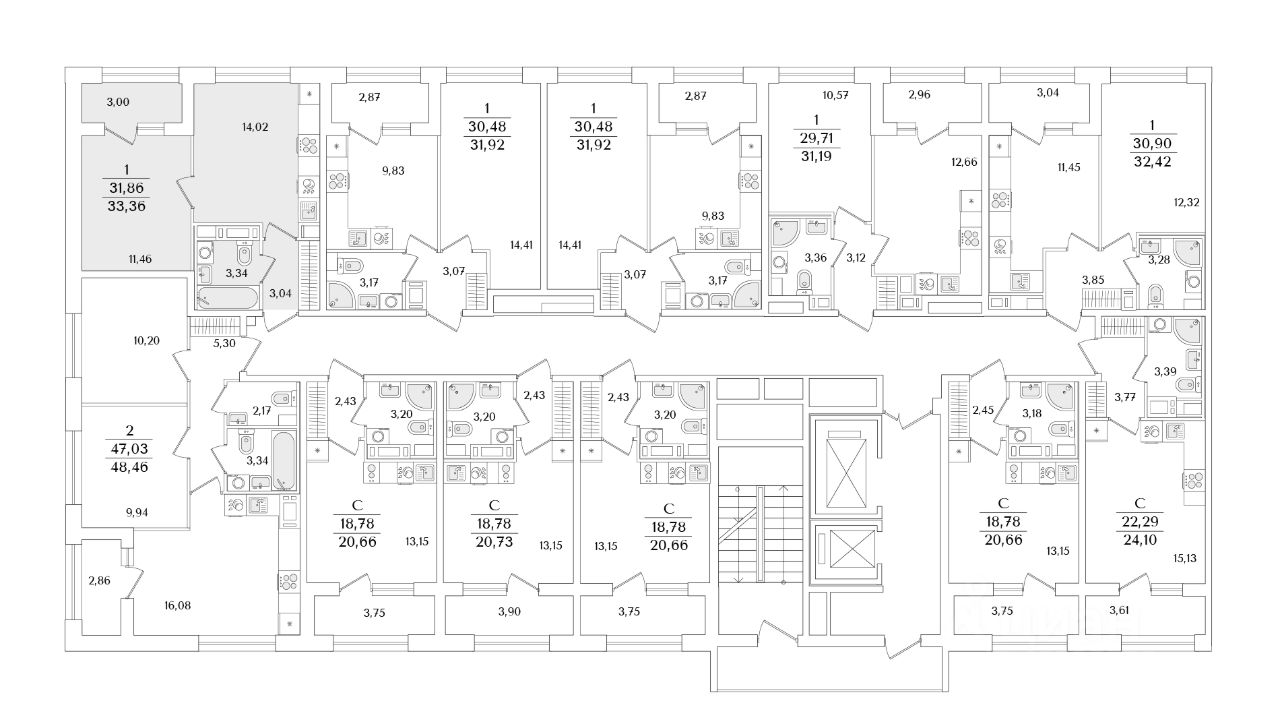 Квартира находится в 15 этажном доме, в Аурум - Корпус 2 на 11 этаже. Общая площадь квартиры 33,36 кв.м.