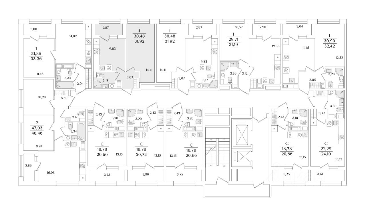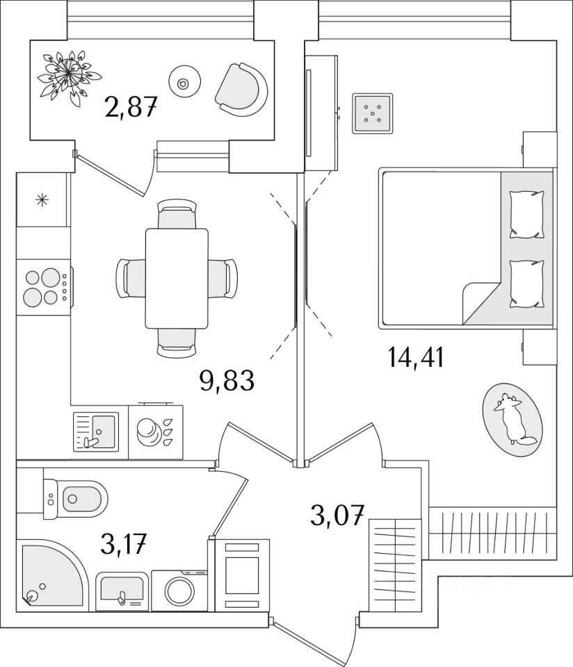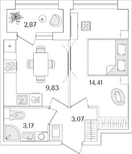 Квартира находится в 15 этажном доме, в Аурум - Корпус 2 на 11 этаже. Общая площадь квартиры 31,92 кв.м.