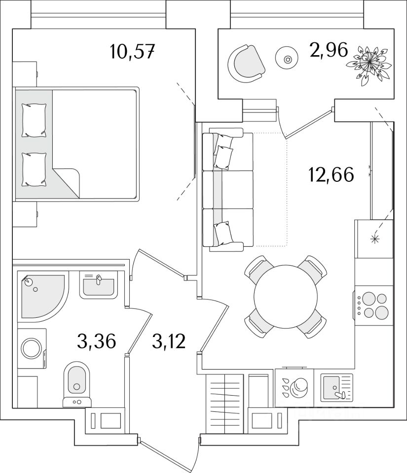 Квартира находится в 15 этажном доме, в Аурум - Корпус 2 на 11 этаже. Общая площадь квартиры 31,19 кв.м.