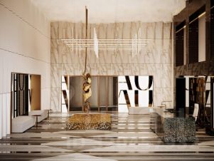 Одно из знаковых пространств жилого комплекса "Аурум" — центральная входная группа. Это место, сочетающее множество ролей. Это и визуальный акцент и статусное фотогеничное пространство и территория отдыха и встреч для жителей.