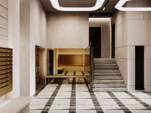 Одно из знаковых пространств жилого комплекса "Аурум" — центральная входная группа. Это место, сочетающее множество ролей. Это и визуальный акцент и статусное фотогеничное пространство и территория отдыха и встреч для жителей.