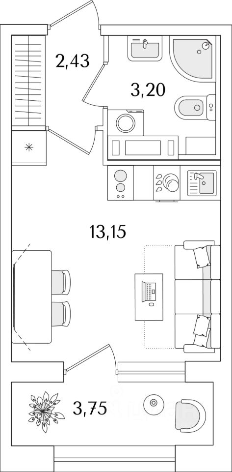 Квартира находится в 15 этажном доме, в Аурум - Корпус 2 на 14 этаже. Общая площадь квартиры 20,66 кв.м.
