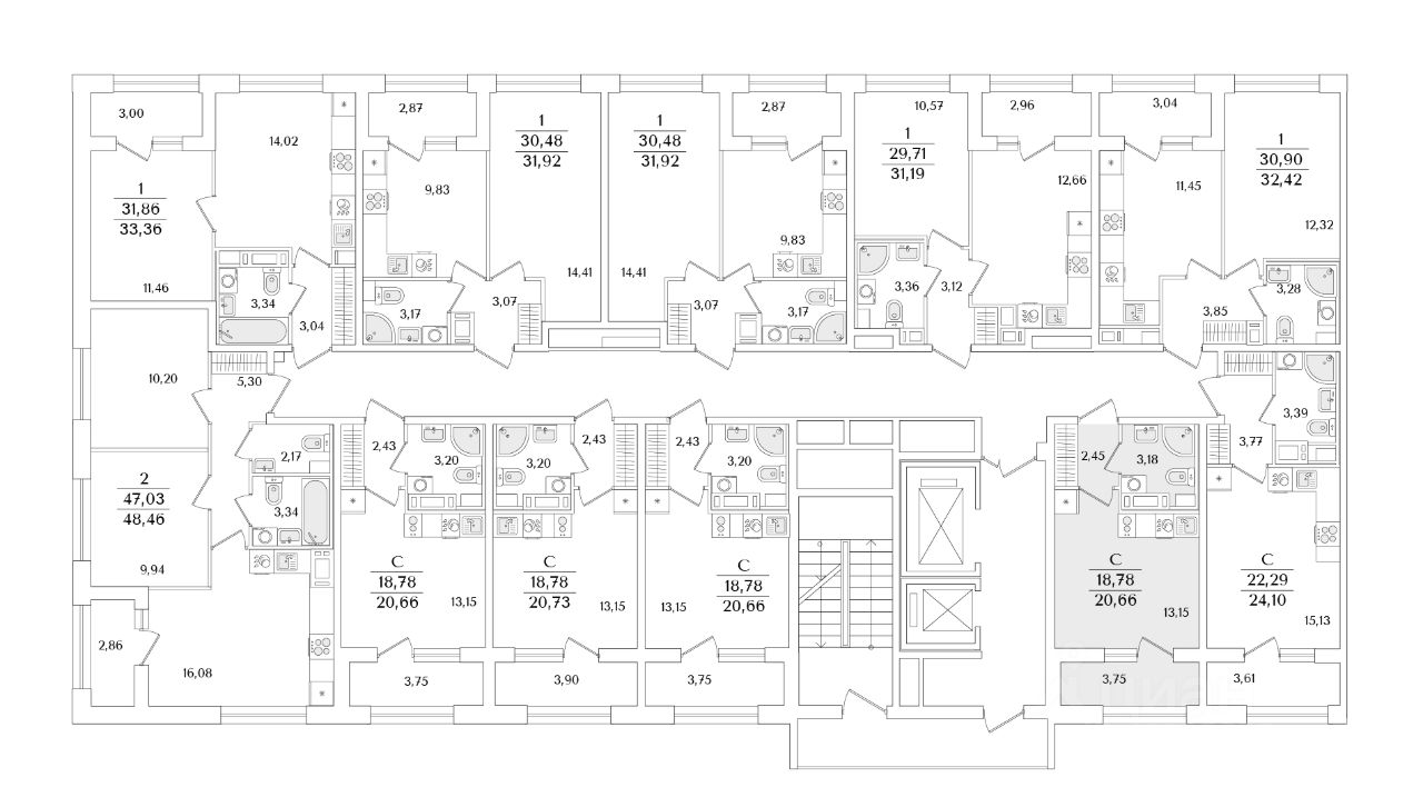 Квартира находится в 15 этажном доме, в Аурум - Корпус 2 на 14 этаже. Общая площадь квартиры 20,66 кв.м.