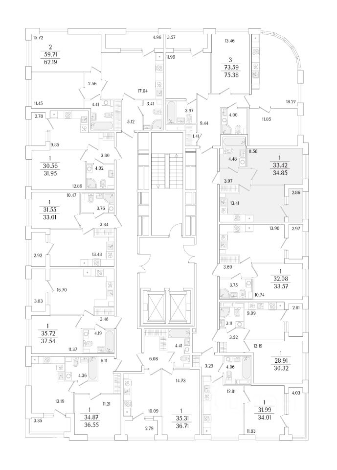 Квартира находится в 17 этажном доме, в Аурум - Корпус 1(С1,С2,С3) на 2 этаже. Общая площадь квартиры 34,85 кв.м.