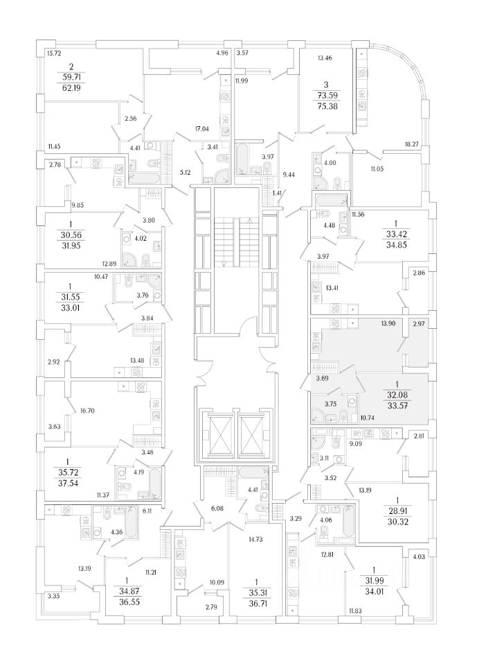 Квартира находится в 17 этажном доме, в Аурум - Корпус 1(С1,С2,С3) на 2 этаже. Общая площадь квартиры 33,57 кв.м.