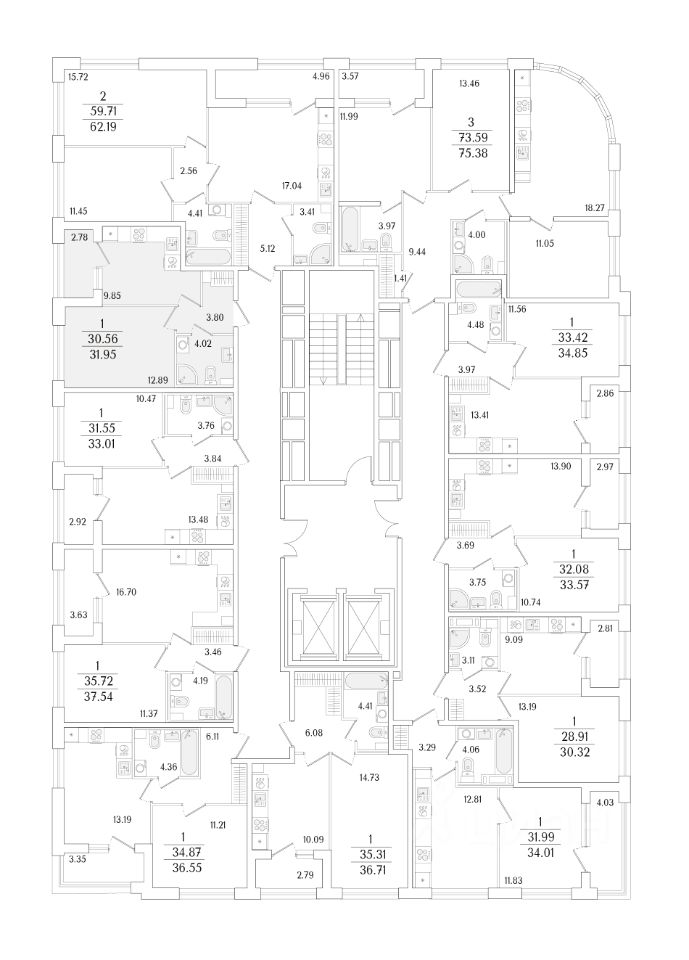 Квартира находится в 17 этажном доме, в Аурум - Корпус 1(С1,С2,С3) на 2 этаже. Общая площадь квартиры 31,95 кв.м.