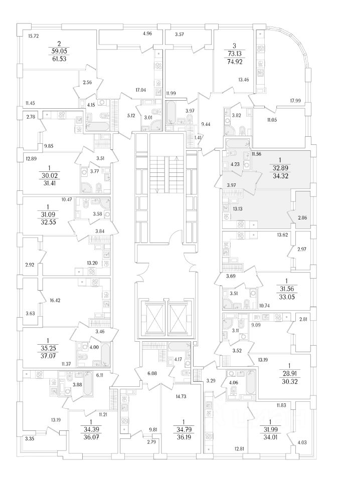 Квартира находится в 17 этажном доме, в Аурум - Корпус 1(С1,С2,С3) на 4 этаже. Общая площадь квартиры 34,32 кв.м.