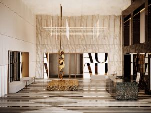 Одно из знаковых пространств жилого комплекса "Аурум" — центральная входная группа. Это место, сочетающее множество ролей. Это и визуальный акцент и статусное фотогеничное пространство и территория отдыха и встреч для жителей.