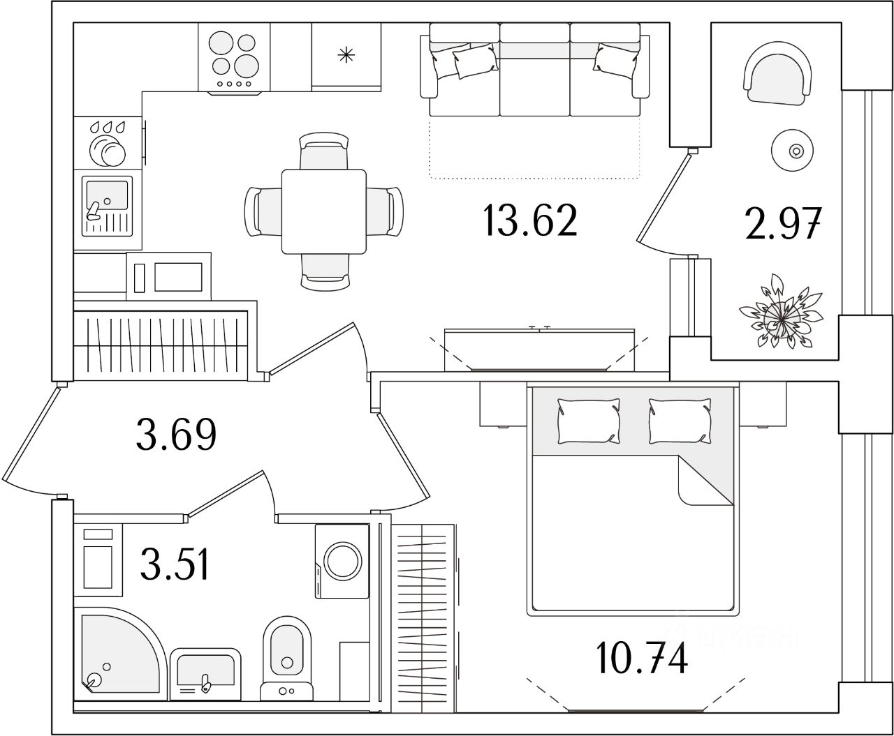Квартира находится в 17 этажном доме, в Аурум - Корпус 1(С1,С2,С3) на 13 этаже. Общая площадь квартиры 33,05 кв.м.