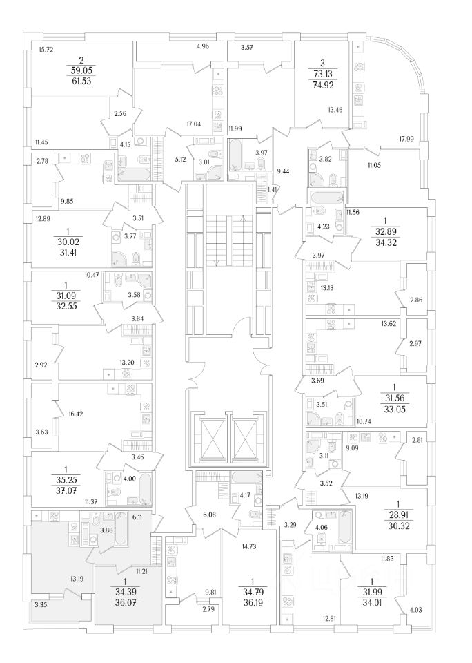 Квартира находится в 17 этажном доме, в Аурум - Корпус 1(С1,С2,С3) на 14 этаже. Общая площадь квартиры 36,07 кв.м.