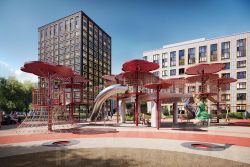 Внутри комплекса создана комфортная и современная жилая среда. Закрытый внутренний двор с креативным пространством, современным озеленением, выразительной геопластикой, большим плейхабом, беговым маршрутом станет идеальным местом для игр, отдыха, прогулок и общения.