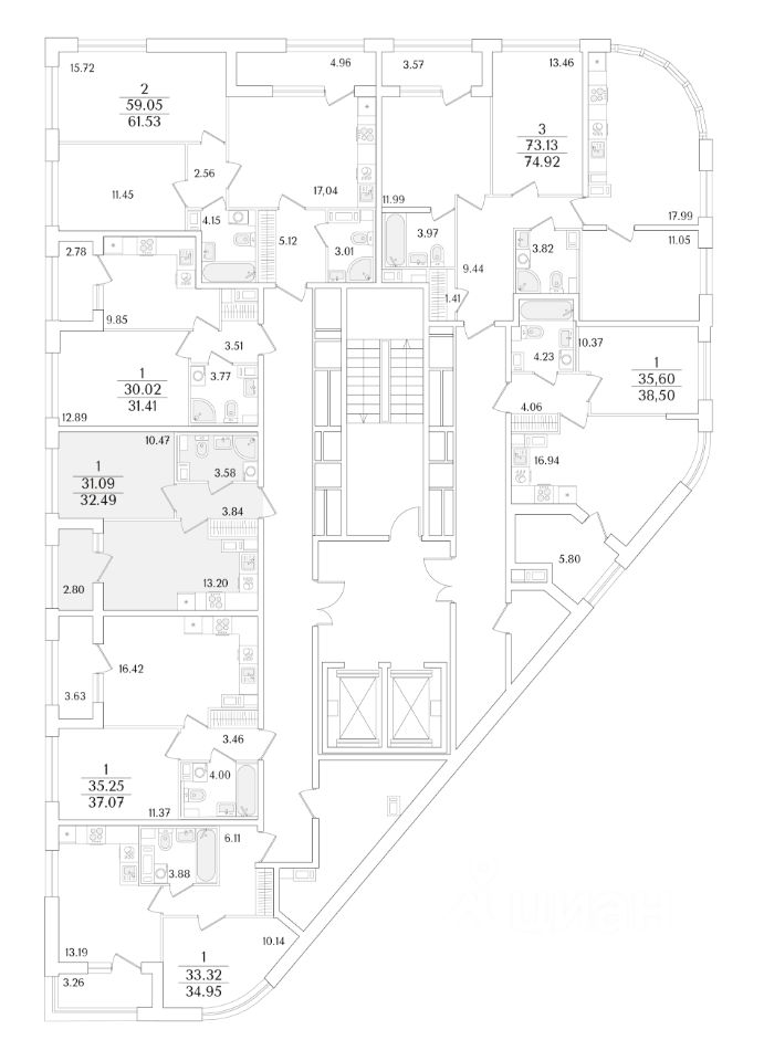 Квартира находится в 17 этажном доме, в Аурум - Корпус 1(С1,С2,С3) на 16 этаже. Общая площадь квартиры 32,49 кв.м.