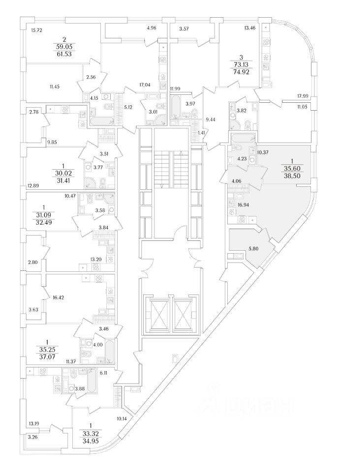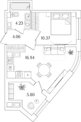 Квартира находится в 17 этажном доме, в Аурум - Корпус 1(С1,С2,С3) на 17 этаже. Общая площадь квартиры 38,50 кв.м.