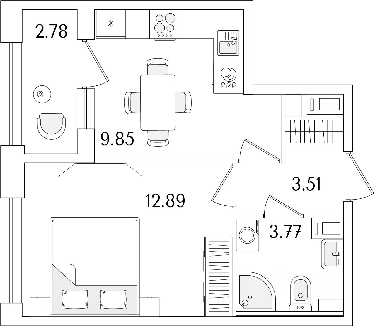 Квартира находится в 17 этажном доме, в Аурум - Корпус 1(С1,С2,С3) на 17 этаже. Общая площадь квартиры 31,41 кв.м.