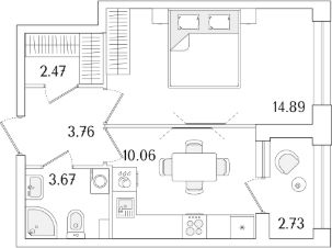 Квартира находится в 17 этажном доме, в Аурум - Корпус 1(С1,С2,С3) на 1 этаже. Общая площадь квартиры 36,22 кв.м.
