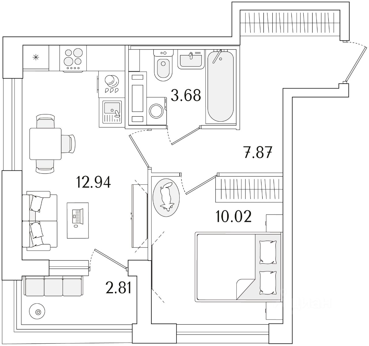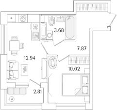 Квартира находится в 17 этажном доме, в Аурум - Корпус 1(С1,С2,С3) на 2 этаже. Общая площадь квартиры 35,92 кв.м.