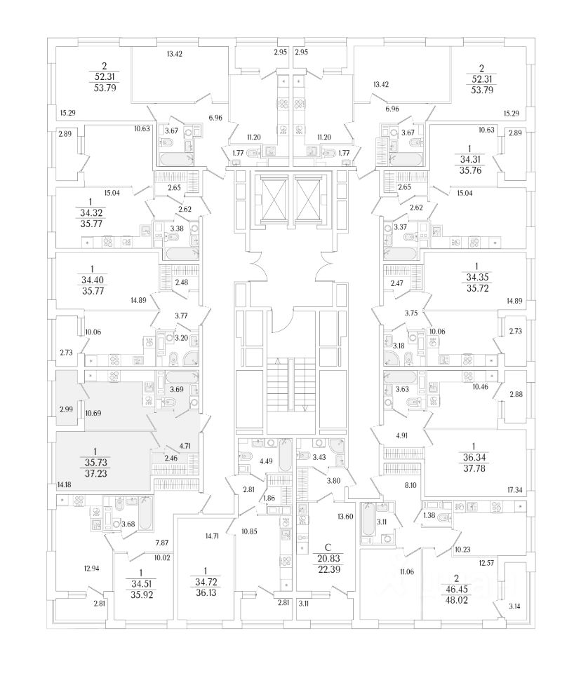 Квартира находится в 17 этажном доме, в Аурум - Корпус 1(С1,С2,С3) на 2 этаже. Общая площадь квартиры 37,23 кв.м.