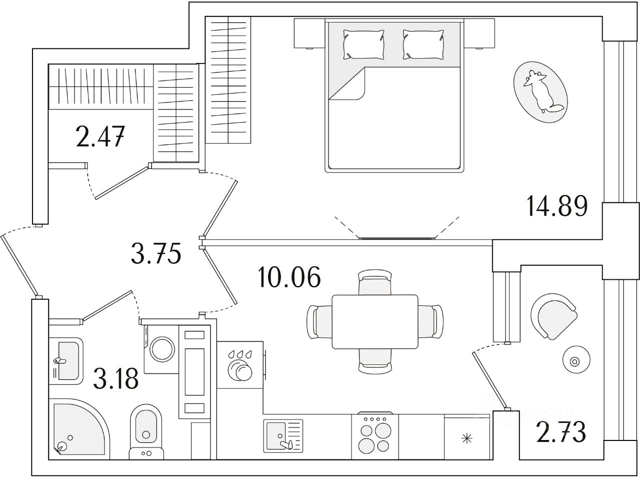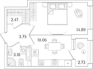 Квартира находится в 17 этажном доме, в Аурум - Корпус 1(С1,С2,С3) на 2 этаже. Общая площадь квартиры 35,72 кв.м.